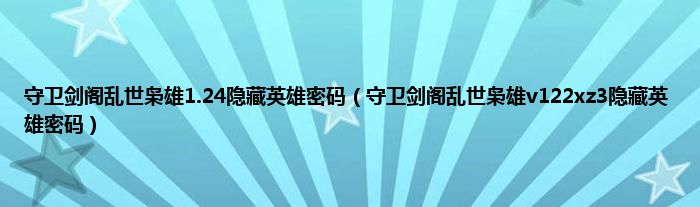 以上就是【守卫剑阁乱世枭雄1.24隐藏英雄密码,守卫剑阁乱世枭雄v122xz3隐藏英雄密码】相关内容。