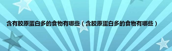 本文,含有胶原蛋白多的食物有哪些,含胶原蛋白多的食物有哪些到此就分享完毕,希望对大家有所帮助。