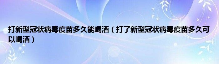 本文,打新型冠状病毒疫苗多久能喝酒,打了新型冠状病毒疫苗多久可以喝酒到此就分享完毕,希望对大家有所帮助。