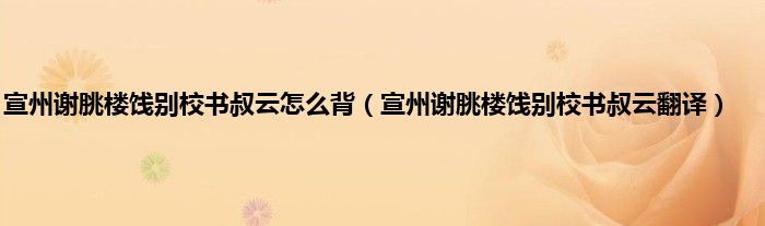 大家好,小问来为大家解答以上问题。宣州谢朓楼饯别校书叔云怎么背,宣州谢朓楼饯别校书叔云翻译这个很多人还不知道,现在让我们一起来看看吧!