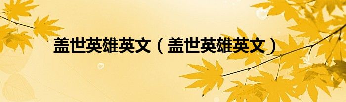以上就是【盖世英雄英文,盖世英雄英文】相关内容。