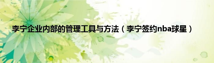 大家好,小问来为大家解答以上问题。李宁企业内部的管理工具与方法,李宁签约nba球星这个很多人还不知道,现在让我们一起来看看吧!