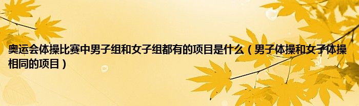 本文,奥运会体操比赛中男子组和女子组都有的项目是什么,男子体操和女子体操相同的项目到此就分享完毕,希望对大家有所帮助。