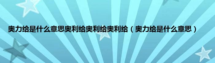 本文,奥力给是什么意思奥利给奥利给奥利给,奥力给是什么意思到此就分享完毕,希望对大家有所帮助。