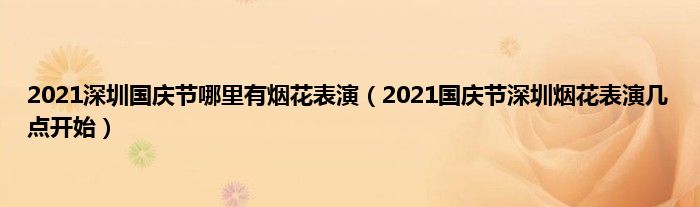 14、 以上就是“2021年国庆深圳哪里有焰火表演,2021年国庆深圳焰火表演什么时候开始”的全部内容。希望能帮到你!
