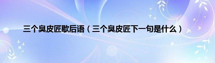 本文,三个臭皮匠歇后语,三个臭皮匠下一句是什么到此就分享完毕,希望对大家有所帮助。