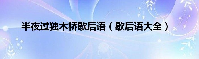 本文,半夜过独木桥歇后语,歇后语大全到此就分享完毕,希望对大家有所帮助。