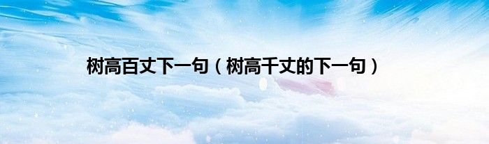 本文,树高百丈下一句,树高千丈的下一句到此就分享完毕,希望对大家有所帮助。