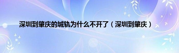 大家好,小问来为大家解答以上问题。深圳到肇庆的城轨为什么不开了,深圳到肇庆这个很多人还不知道,现在让我们一起来看看吧!