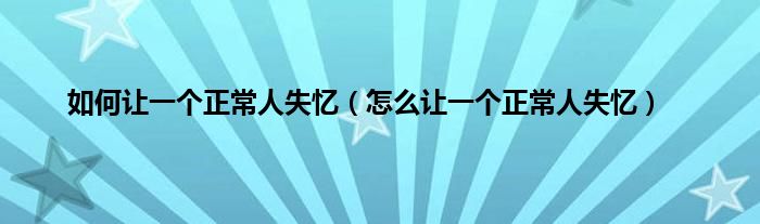 以上就是【如何让一个正常人失忆,怎么让一个正常人失忆】相关内容。